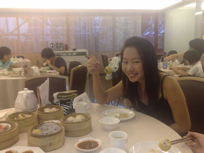 With Jing Xuan, super smart girl who's going on to study Law also in NUS. ![]() Chopstick holder. ![]() Three of us at Dimsum's place. Me, Christina and Cindy. ![]() Christina, i'm so gonna miss you talkativeness. ![]() Look at the spread and we had more not included in the picture. ![]() The pretty looking fried ice cream which tasted equally yummy. ![]()